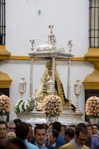 En la Procesión Eucarística de la Fiesta del Corpus Christi, cuando la Sagrada Imagen de la Virgen estuviere en la Parroquia, se sacará en procesión delante del paso del Santísimo Sacramento. Procuren los Hermanos que se observe en ella religioso silencio, sin darse vivas algunos y dirigiendo todo el culto al Señor presente en la Eucaristía. En esta Procesión se respetarán los derechos de las Hermandades Eucarísticas si las hubiere.