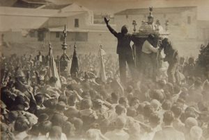Con ese fondo ambiental de la segunda mitad del siglo XVI, se fueron sucediendo las primeras Venidas de la Imagen a Lora y sus correspondientes Idas. En principio, la Sagrada Efigie era traída por un reducido número de clérigos loreños, a los cuales se unían el Prior de Setefilla y algunos Cofrades o Hermanos de Nuestra Señora, y en el Palmar del Albadalejo, ya en las afueras de Lora, la Villa salía a recibirla en procesión, presidida por el Concejo y el Clero, con la imagen de San Sebastián. Después en la llamada puerta de Córdoba, cerca de Santa Ana, el Prior de Setefilla entregaba oficialmente la Imagen, con el compromiso de su devolución por parte de Lora. Una vez la Virgen en la Iglesia Mayor, se hacían Rogativas, a veces también un Novenario de Misas cantadas o Funciones, y, concluidas éstas, el Cabildo Municipal decretaba su Ida.